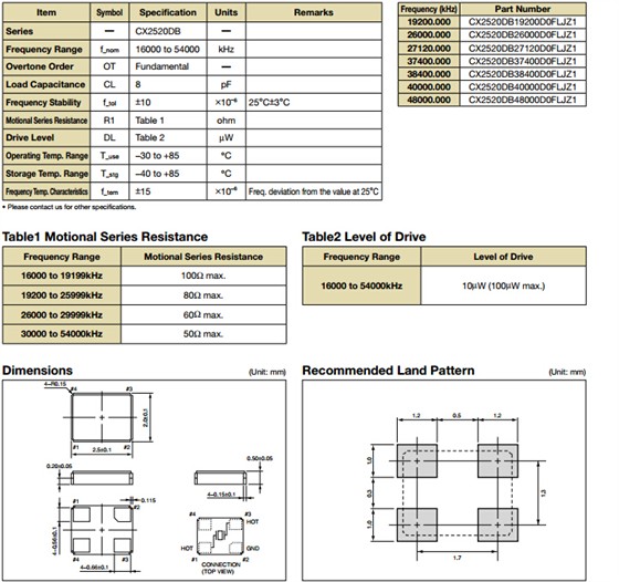 CX2520DB16000D0GEJZ1 频率16MHZ 负载电容8PF