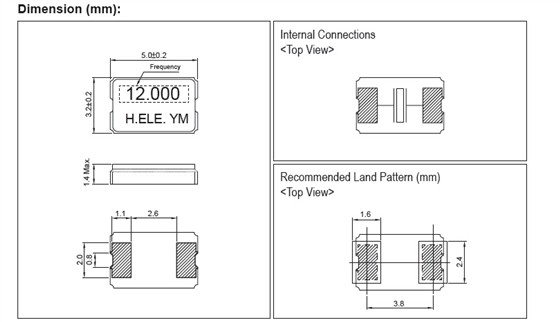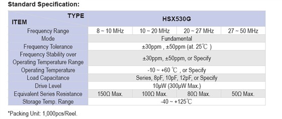 HSX530G晶振,5032贴片晶振,加高HELE晶振