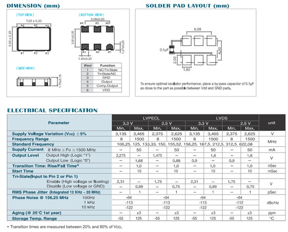 156.25M差分晶振,EPSON品质,EG-2102晶振