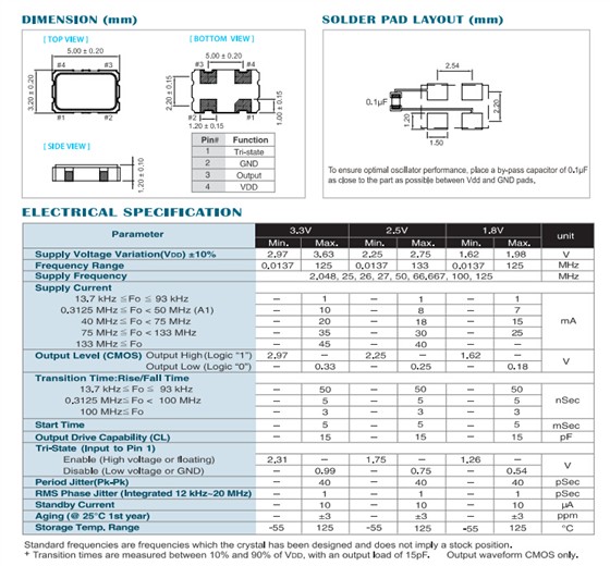 FCXO-03L晶振,5032有源晶振,RIVER晶振